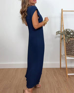 Kjole Ensfarvet Rundhalset Slit Tunika