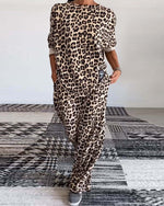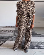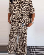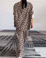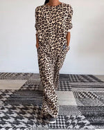 To-delt leopardprintsæt | Top og bredbenede bukser