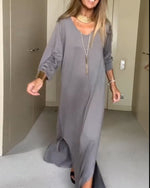 Kjole Ensfarvet Rundhalset Slit Tunika
