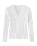 Top V-Hals Ribbet Langærmede