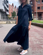 Ensfarvet afslappet langærmet kjole