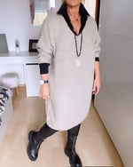 SPECIFIKATIONER Stil: Afslappet Materiale: Bomuldsblanding Kjoletype: Shift-kjole Kjolelængde: Over knæet Halsudskæring: Rund hals Mønstertype: Ensfarvet Ærmetype: Almindeligt ærme Ærmelængde: Langærmet Detaljer: Lomme Pasform: Almindelig Sæson/årstid: Forår,Efterår Lejlighed: Daglig Pakken inkluderer: 1 x Kjole STØRRELSESTABEL (cm) Stør...