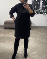 SPECIFIKATIONER Stil: Afslappet Materiale: Bomuldsblanding Kjoletype: Shift-kjole Kjolelængde: Over knæet Halsudskæring: Rund hals Mønstertype: Ensfarvet Ærmetype: Almindeligt ærme Ærmelængde: Langærmet Detaljer: Lomme Pasform: Almindelig Sæson/årstid: Forår,Efterår Lejlighed: Daglig Pakken inkluderer: 1 x Kjole STØRRELSESTABEL (cm) Stør...
