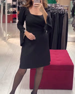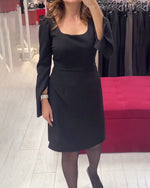 Kjole Firkantet Hals Løs Udsvingende Ærme Med Splits