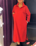 SPECIFIKATIONER Stil: Afslappet Materiale: Bomuldsblanding Kjoletype: Shift-kjole Kjolelængde: Over knæet Halsudskæring: Rund hals Mønstertype: Ensfarvet Ærmetype: Almindeligt ærme Ærmelængde: Langærmet Detaljer: Lomme Pasform: Almindelig Sæson/årstid: Forår,Efterår Lejlighed: Daglig Pakken inkluderer: 1 x Kjole STØRRELSESTABEL (cm) Stør...