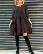 Kjole Ensfarvet Rundhalset Slit Tunika