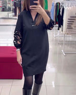 SPECIFIKATIONER Stil: Afslappet Materiale: Bomuldsblanding Kjoletype: Shift-kjole Kjolelængde: Over knæet Halsudskæring: Rund hals Mønstertype: Ensfarvet Ærmetype: Almindeligt ærme Ærmelængde: Langærmet Detaljer: Lomme Pasform: Almindelig Sæson/årstid: Forår,Efterår Lejlighed: Daglig Pakken inkluderer: 1 x Kjole STØRRELSESTABEL (cm) Stør...