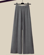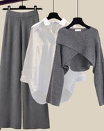 Tredelt sæt | Top med tværgående design, hvid skjorte og grå bukser