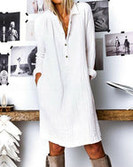 SPECIFIKATIONER Stil: Afslappet Materiale: Bomuldsblanding Kjoletype: Shift-kjole Kjolelængde: Over knæet Halsudskæring: Rund hals Mønstertype: Ensfarvet Ærmetype: Almindeligt ærme Ærmelængde: Langærmet Detaljer: Lomme Pasform: Almindelig Sæson/årstid: Forår,Efterår Lejlighed: Daglig Pakken inkluderer: 1 x Kjole STØRRELSESTABEL (cm) Stør...