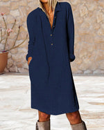 Langærmet ensfarvet kjole