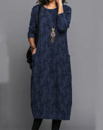 Langærmet lommekjole med tryk