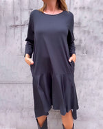SPECIFIKATIONER Stil: Afslappet Materiale: Bomuldsblanding Kjoletype: Shift-kjole Kjolelængde: Over knæet Halsudskæring: Rund hals Mønstertype: Ensfarvet Ærmetype: Almindeligt ærme Ærmelængde: Langærmet Detaljer: Lomme Pasform: Almindelig Sæson/årstid: Forår,Efterår Lejlighed: Daglig Pakken inkluderer: 1 x Kjole STØRRELSESTABEL (cm) Stør...