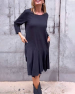 Kjole Ensfarvet Rundhalset Slit Tunika