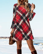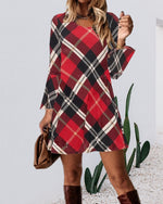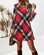 Plaid afslappet kjole med rund hals
