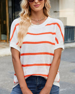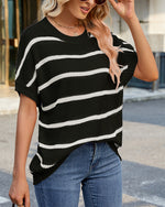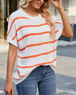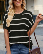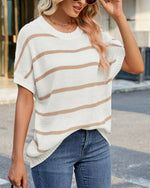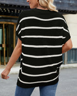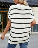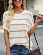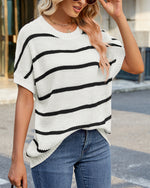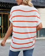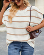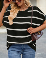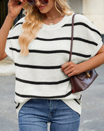Sweater Stribet Drop Shoulder Kort Ærme