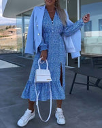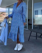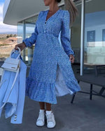 V-hals blomstret patchworkkjole