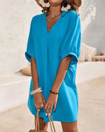 Kjole med afslappet løs v-hals