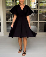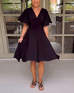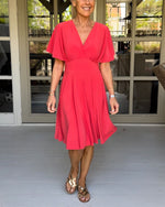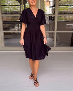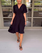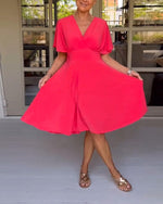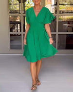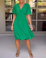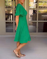 Grøn kortærmet kjole med V-udskæring