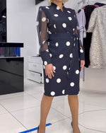 Knælang kjole med prikker og gennemsigtige ærmer