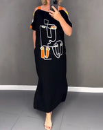 Kjole Kold Skulder Udhulning Print Slids