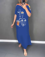 SPECIFIKATIONER Stil: Afslappet Materiale: Bomuldsblanding Kjoletype: A-linje Kjolelængde: Maxi Halsudskæring: V-udskæring Mønstertype: Tryk Ærmelængde: Kortærmet Pasform: Almindelig Sæson/årstid: Forår,Sommer Lejlighed: Daglig Pakken inkluderer: 1 x Kjole STØRRELSESTABEL (cm) Størrelse Buste Længde S 97 132 M 101 133 L 105 134 XL 11...