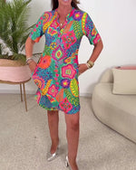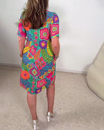 Kjole Rund hals Trykket Korte ærmer Hofte