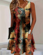 Kjole Mønstret Rund Hals Ærmeløs