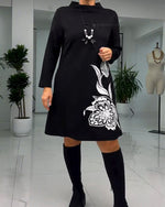 Tøjslagermode Halvlænget Ærme Trykt Swing