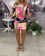 Kjole Rund hals Trykket Korte ærmer Hofte