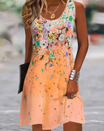 Kjole Dobbeltlag Chiffon Trykt Uregelmæssig