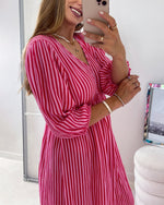 SPECIFIKATIONER Stil: Afslappet Materiale: Bomuldsblanding Kjoletype: Shift-kjole Kjolelængde: Over knæet Halsudskæring: Rund hals Mønstertype: Stribet Ærmetype: Almindeligt ærme Ærmelængde: Kortærmet Pasform: Almindelig Sæson/årstid: Forår,Sommer Lejlighed: Daglig Pakken inkluderer: 1 x Kjole STØRRELSESTABEL (cm) Størrelse Buste Længde ...