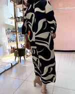 SPECIFIKATIONER Stil: Afslappet Materiale: Bomuldsblanding Kjoletype: Shift-kjole Kjolelængde: Maxi Halsudskæring: V-udskæring Mønstertype: Tryk Ærmetype: Drop Shoulder Ærmelængde: Langærmet Detaljer: Knapper Pasform: Almindelig Sæson/årstid: Forår,Efterår,Vinter Lejlighed: Daglig Pakken inkluderer: 1 x Kjole STØRRELSESTABEL (cm) Størrelse B...