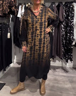 SPECIFIKATIONER Stil: Afslappet Materiale: Bomuldsblanding Kjoletype: Shift-kjole Kjolelængde: Maxi Halsudskæring: V-udskæring Mønstertype: Tryk Ærmetype: Drop Shoulder Ærmelængde: Langærmet Detaljer: Knapper Pasform: Almindelig Sæson/årstid: Forår,Efterår,Vinter Lejlighed: Daglig Pakken inkluderer: 1 x Kjole STØRRELSESTABEL (cm) Størrelse B...