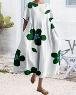 SPECIFIKATIONER Stil: Afslappet Materiale: Bomuldsblanding Kjoletype: Shift-kjole Kjolelængde: Midi Halsudskæring: Rund hals Mønstertype: Tryk Ærmetype: Almindeligt ærme Ærmelængde: Kortærmet Pasform: Almindelig Sæson/årstid: Forår,Sommer Lejlighed: Daglig Pakken inkluderer: 1 x Kjole STØRRELSESTABEL (cm) Størrelse Buste Længde S 97 1...