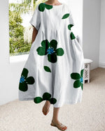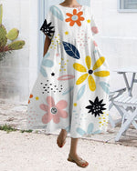 SPECIFIKATIONER Stil: Afslappet Materiale: Bomuldsblanding Kjoletype: A-linje Kjolelængde: Maxi Halsudskæring: V-udskæring Mønstertype: Tryk Ærmetype: Drop Shoulder Ærmelængde: Trekvartærmet Detaljer: Knapper Pasform: Almindelig Sæson/årstid: Forår,Sommer Lejlighed: Daglig Pakken inkluderer: 1 x Kjole STØRRELSESTABEL (cm) Størrelse Buste Læn...
