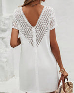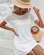 SPECIFIKATIONER Stil: Afslappet Materiale: Bomuldsblanding Kjoletype: Shift-kjole Kjolelængde: Midi Halsudskæring: Rund hals Mønstertype: Ensfarvet Ærmetype: Almindeligt ærme Ærmelængde: Kortærmet Detaljer: Snøre op,Pjusket Pasform: Almindelig Sæson/årstid: Forår,Sommer Lejlighed: Daglig Pakken inkluderer: 1 x Kjole STØRRELSESTABEL (cm) Stør...