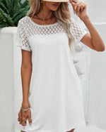 SPECIFIKATIONER Stil: Afslappet Materiale: Bomuldsblanding Kjoletype: Shift-kjole Kjolelængde: Over knæet Halsudskæring: Rund hals Mønstertype: Ensfarvet Ærmetype: Almindeligt ærme Ærmelængde: Kortærmet Pasform: Almindelig Sæson/årstid: Forår,Sommer Lejlighed: Daglig Pakken inkluderer: 1 x Kjole STØRRELSESTABEL (cm) Størrelse Buste Længd...