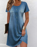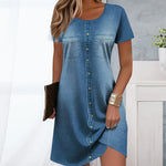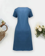 SPECIFIKATIONER Stil: Afslappet Materiale: Bomuldsblanding Kjoletype: Shift-kjole Kjolelængde: Over knæet Halsudskæring: Rund hals Mønstertype: Ensfarvet Ærmetype: Almindeligt ærme Ærmelængde: Kortærmet Pasform: Almindelig Sæson/årstid: Forår,Sommer Lejlighed: Daglig Pakken inkluderer: 1 x Kjole STØRRELSESTABEL (cm) Størrelse Buste Længd...