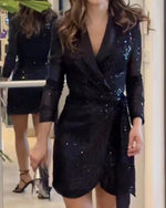 Langærmet festkjole med bindesnor
