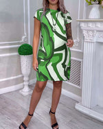 Kjole Korte Ærmer Knapper Print