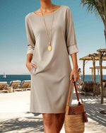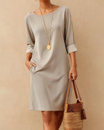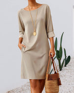 Kjole Ensfarvet Rundhalset Slit Tunika