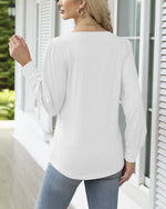 SPECIFIKATIONER Top type: Toppe Stil: Afslappet Materiale: Spandex,Polyester Lejlighed: Daglig Halsudskæring: V-udskæring Ærmetype: Almindeligt ærme Ærmelængde: Langærmet Pasform: Almindelig Sæson/årstid: Forår,Efterår Detaljer: Knapper,Rynket Pakken inkluderer: 1 x Top STØRRELSESTABEL (cm) Størrelse Buste Længde S 97 65 M 101 66.5 L 1...