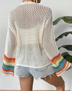 Strikket Top V-Udskæring Sexig Perlebrodseret Ærme