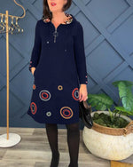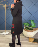 Afslappet kjole med hætte og cirkelprint
