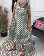 SPECIFIKATIONER Stil: Afslappet Materiale: Bomuldsblanding Kjoletype: Shift-kjole Kjolelængde: Maxi Halsudskæring: Rund hals Mønstertype: Ensfarvet Ærmelængde: Uden ærmer Detaljer: Patchwork Pasform: Almindelig Sæson/årstid: Forår,Sommer Lejlighed: Daglig Pakken inkluderer: 1 x Kjole STØRRELSESTABEL (cm) Størrelse Buste Længde S 97 130 M...