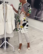 SPECIFIKATIONER Kategori: Sweatre Stil: Afslappet Materiale: Akryl,Spandex,Polyester Halsudskæring: Rund hals Mønstertype: Tryk Ærmetype: Flagermuse-ærmer Ærmelængde: Langærmet Pasform: Almindelig Lejlighed: Daglig Sæson/årstid: Forår,Efterår Pakken inkluderer: 1 x Sweater STØRRELSESTABEL (cm) Størrelse Buste Længde S 97 65 M 101 66...