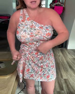 SPECIFIKATIONER Stil: Ferie Materiale: 15% Spandex,85% Polyester Lejlighed: Ferie Halsudskæring: Halsstrop Mønstertype: Blomster-(garment type),Tryk Ærmelængde: Uden ærmer Top type: Bikini,Tildækning BH Type: Stropløs BH Underdel type: Naturlig Pasform: Almindelig Sæson/årstid: Forår,Sommer Detaljer: Rygløs,Snøre op Pakken inkluderer: 1 x Biki...