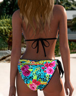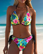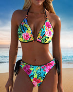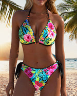 SPECIFIKATIONER Stil: Ferie Materiale: 15% Spandex,85% Polyester Lejlighed: Ferie Halsudskæring: Halsstrop Mønstertype: Blomster-(garment type),Tryk Ærmelængde: Uden ærmer Top type: Bikini,Tildækning BH Type: Stropløs BH Underdel type: Naturlig Pasform: Almindelig Sæson/årstid: Forår,Sommer Detaljer: Rygløs,Snøre op Pakken inkluderer: 1 x Biki...