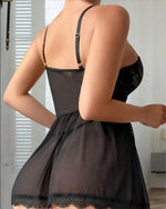SPECIFIKATIONER Stil: Sexet Materiale: Bomuldsblanding Halsudskæring: Spaghetti-stropper Ærmelængde: Uden ærmer Detaljer: Patchwork,Rygløs,Gennemsigtig Pasform: Almindelig Sæson/årstid: Forår,Sommer,Efterår,Vinter Pakken inkluderer: 1 x Søvn kjole STØRRELSESTABEL (cm) Størrelse Under barmen Længde S 66 75 M 70 76 L 74 77 XL 78 7...