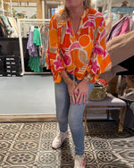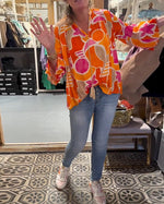 Farverig bluse i løs pasform